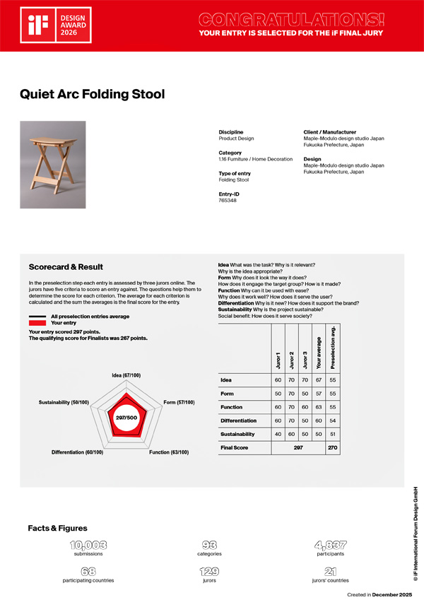 現在、IFデザインアワードに「折り畳みスツール」を応募しています。